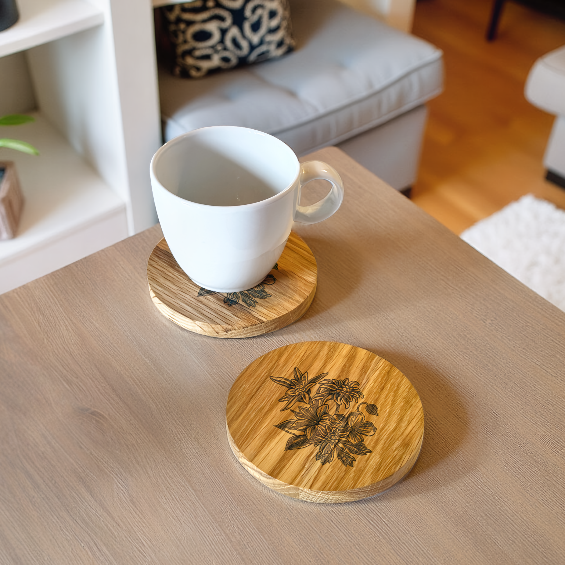 Eichenholz-Untersetzer Alpensymbole