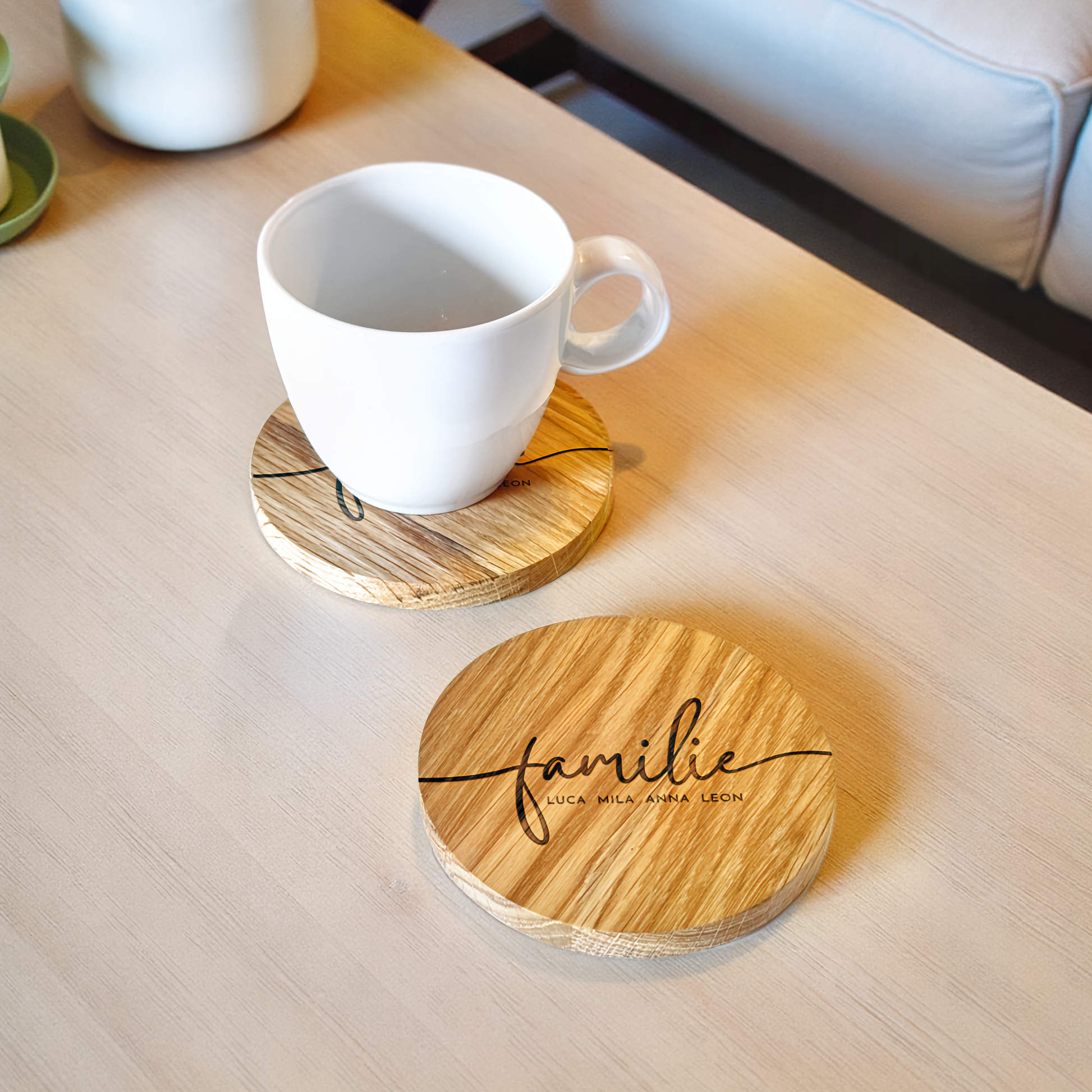 Eichenholz-Untersetzer Familie