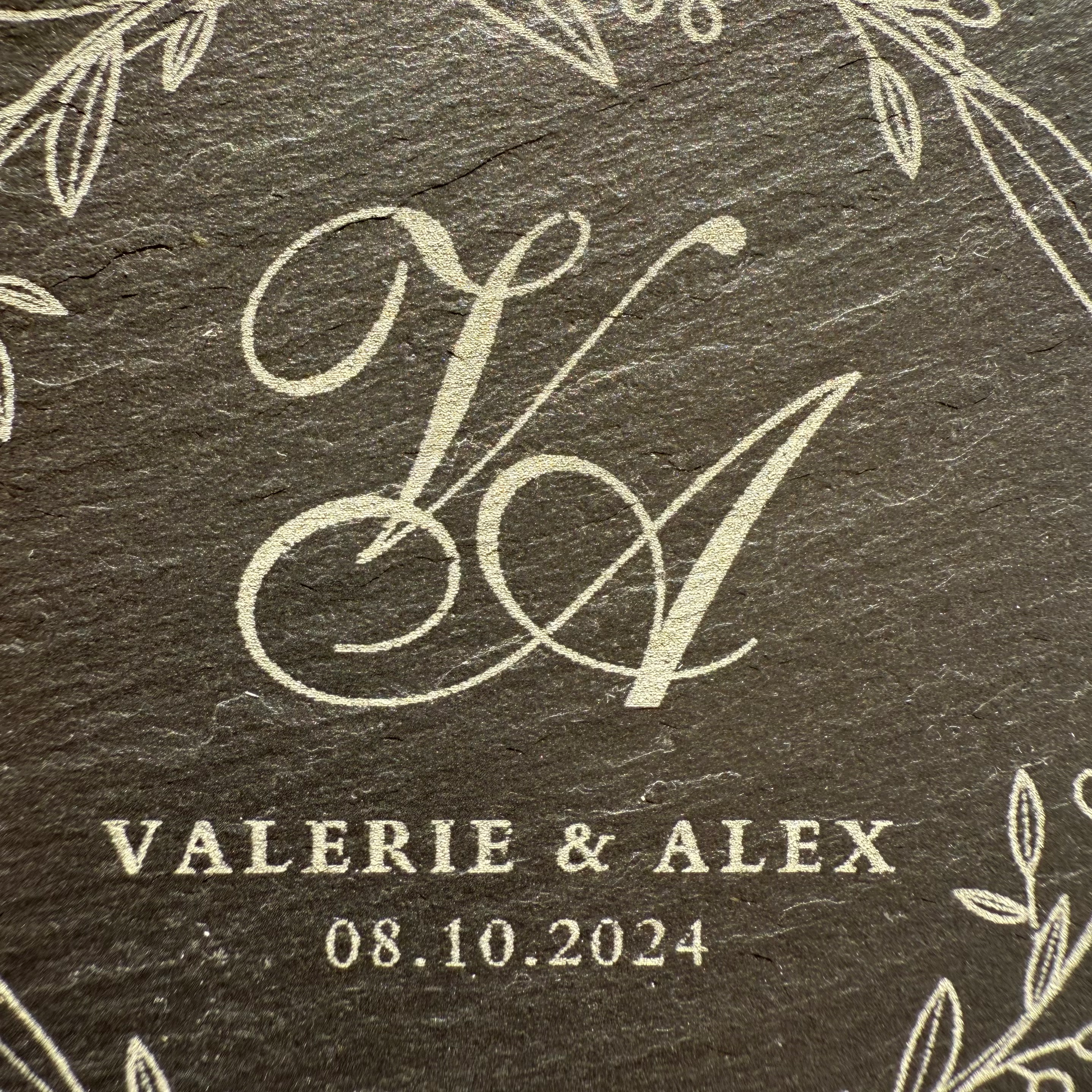 - Material: Naturschiefer lackiert mit speichelechtem Lack