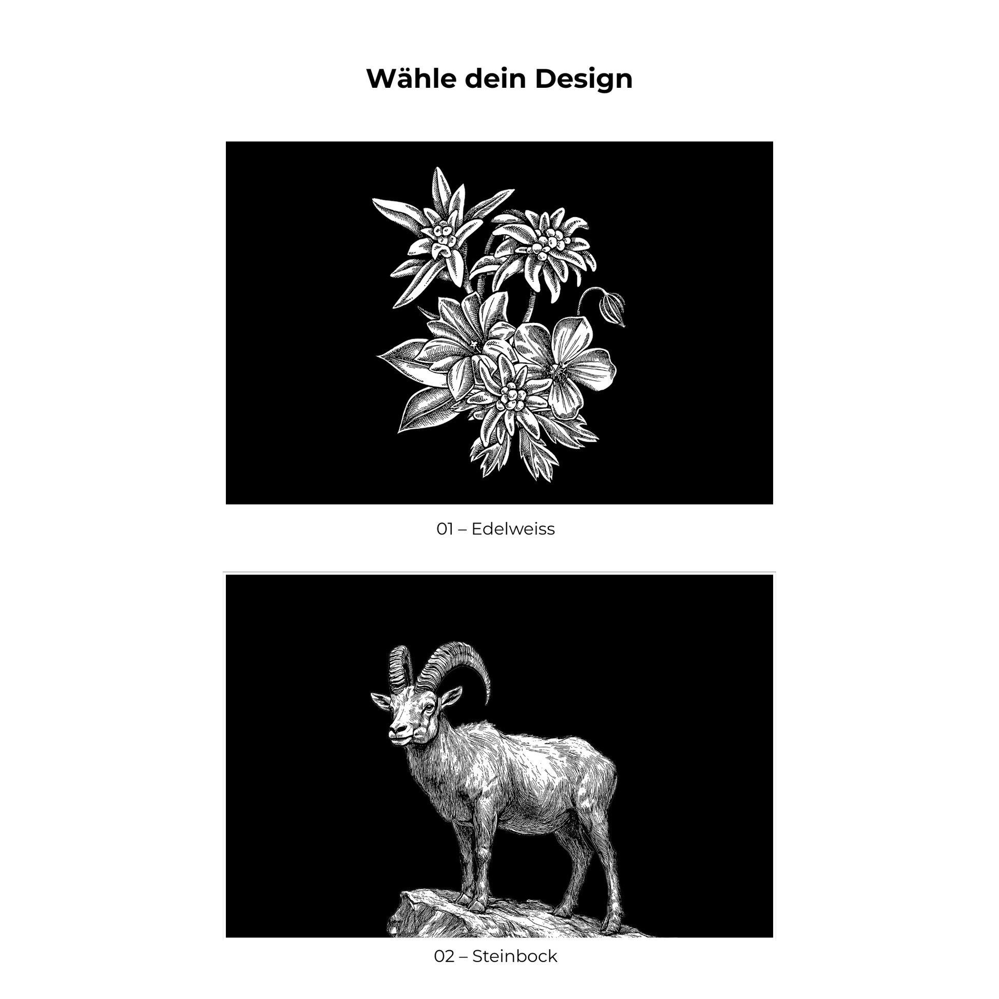 Edelweiss oder Steinbock – kraftvolle Symbole der Alpen, edel verewigt